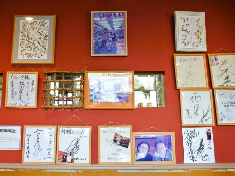 有名店らしく、カウンター席の正面には多くのタレントやスポーツ選手のサイン色紙が飾られており、アジャンタ総本家の歴史と人気を物語っているようだ。