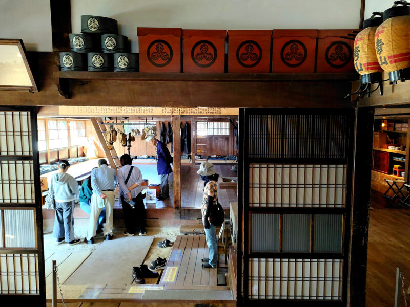 かつての青山家は10数棟の建物を所有していたが、開拓の村にはそれらのうち7棟が移築された。上の画像は母屋の内部。吹き抜け2階建てのこの部屋はおよそ60名の漁夫が寝泊まりした場所で、撮影している筆者の背後に親方一族の豪華な居住スペースがある。